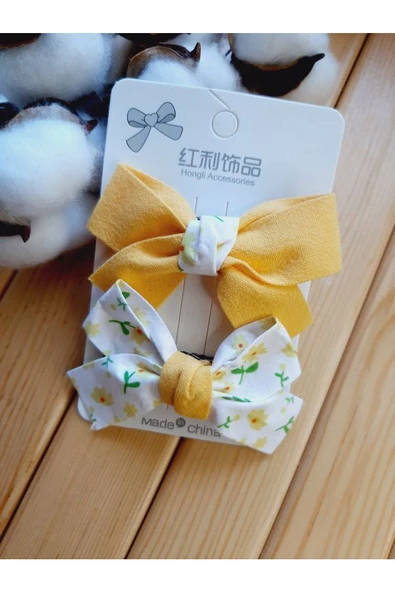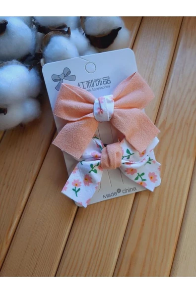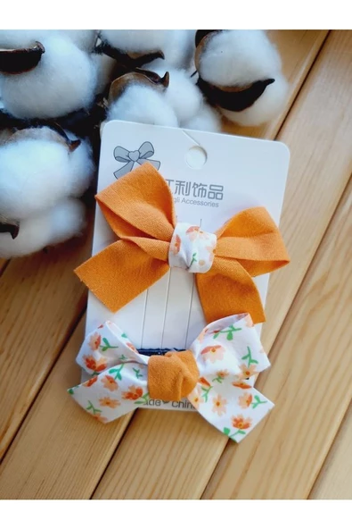 2'li Çiçekli Kurdela Klips Toka Turuncu