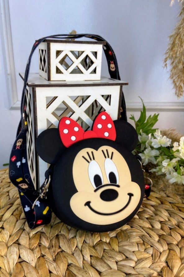 Minnie Mouse Figürlü Kız Çocuk Askılı Çanta Siyah Sbt496