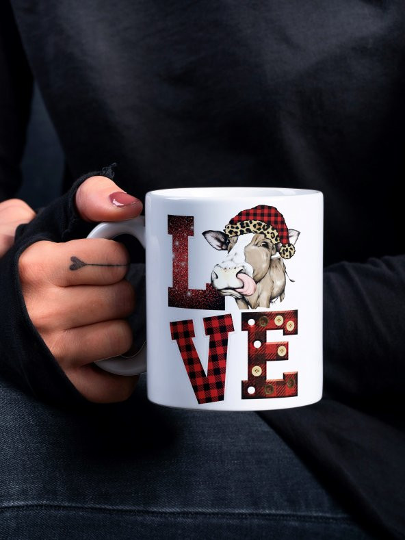 Love Yazılı İnekli Eğlenceli Yazılı Özel Tasarım Baskılı Kupa Bardak Komik Kupa Bardak Kahve Bardağı