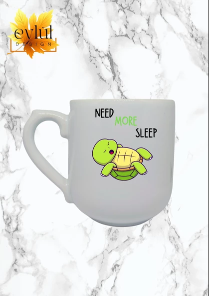 Need More Sleep Yazılı Kaplumbağa Özel Tasarım Baskılı Lüks Oval Kupa Bardak-Kahve Bardak