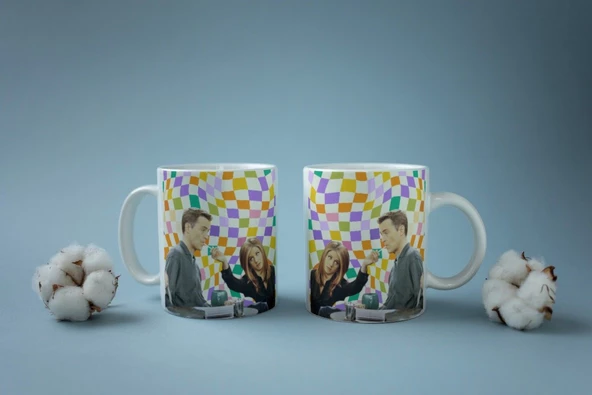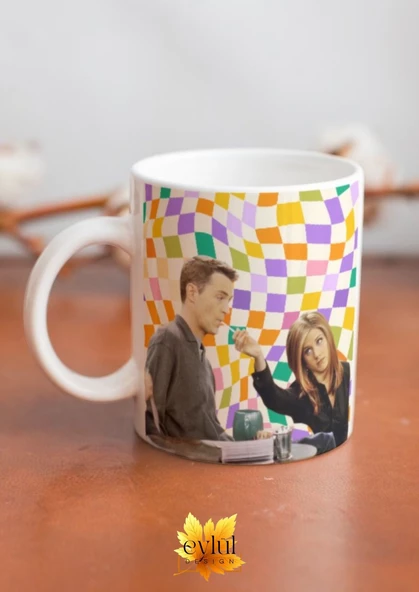 Friends Temalı Chandler Rachell Baskılı Eğlenceli Tam Tur Özel Tasarım Renkli Baskılı Kupa Bardak