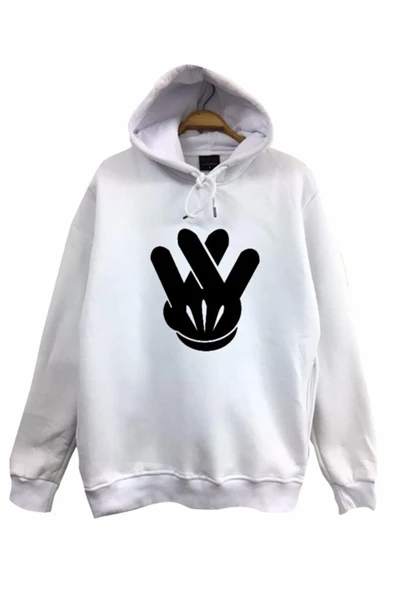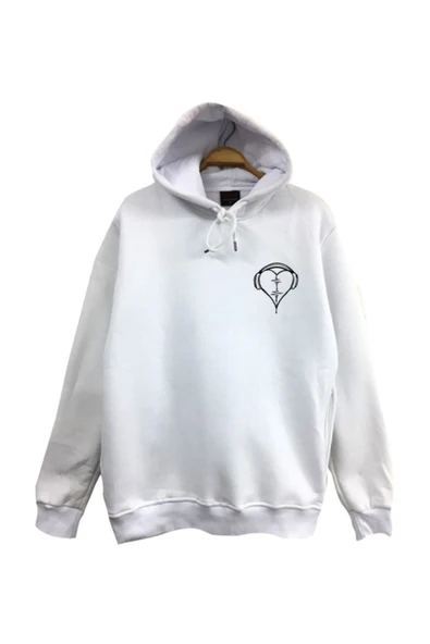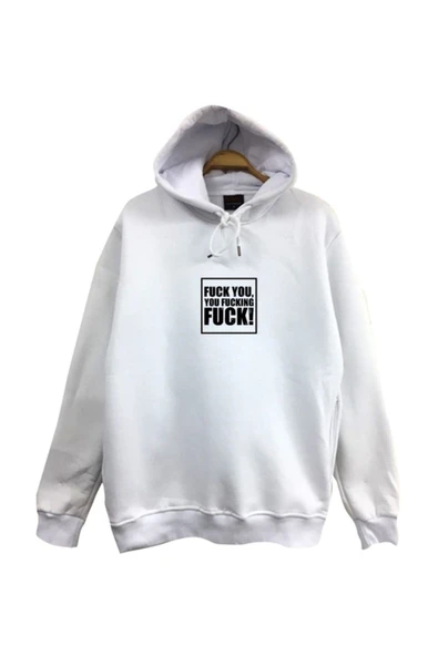fame-stoned Shameless Baskılı Unisex %100 Pamuk Beyaz Kapüşonlu Sweatshirt