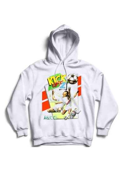 fame-stoned Unisex Beyaz Kick Off Oyun Baskılı Kapüşonlu Sweatshirt