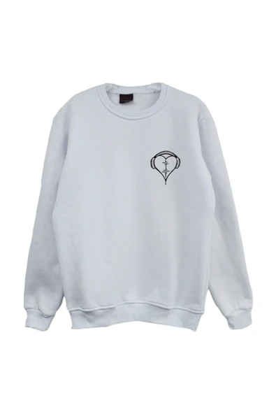 fame-stoned Kulaklık Kalp Ritim Müzik Baskılı Bisiklet Yaka Sweatshirt