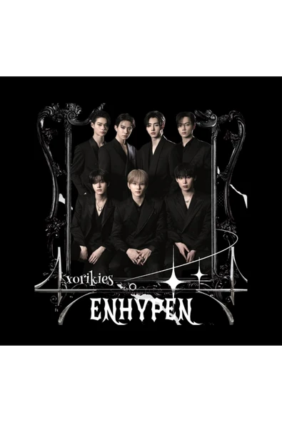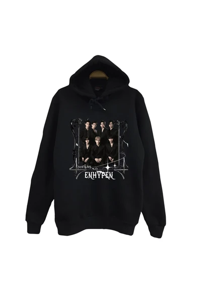 Enhypen – K-Pop Müzik Grubu Baskılı Unisex %100 Pamuk Siyah Kapüşonlu Sweatshirt