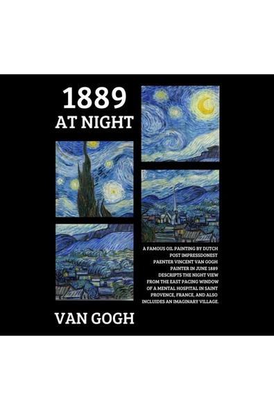 Vincent Van Gogh Baskılı Unisex %100 Pamuk Siyah T-shirt