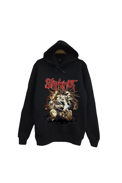 Slipknot Baskılı Unisex %100 Pamuk Siyah Kapüşonlu Sweatshirt