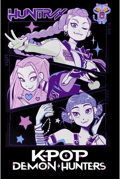 K-Pop Demon Hunters Baskılı Unisex %100 Pamuk Kapüşonlu Siyah Sweatshirt
