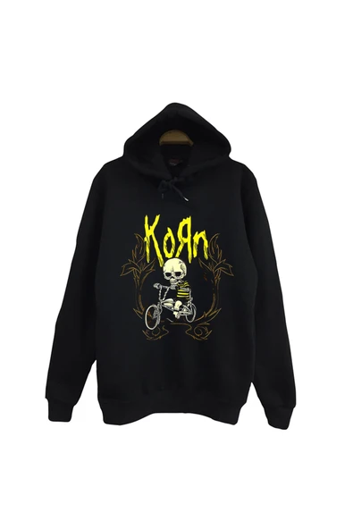 Korn Müzik Grubu Baskılı Unisex %100 Pamuk Siyah Kapüşonlu Sweatshirt
