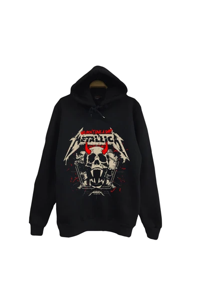 Metallica Baskılı Unisex %100 Pamuk Siyah Kapüşonlu Sweatshirt