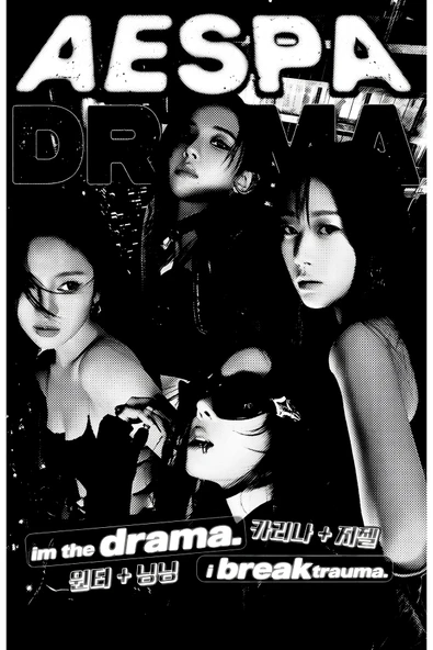 Aespa Müzik Grubu K-Pop Baskılı Unisex %100 Pamuk Kapüşonlu Siyah Sweatshirt