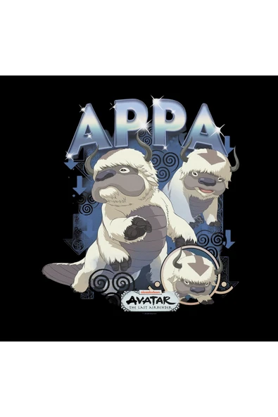 Avatar The Last Airbender Appa Baskılı %100 Pamuk Unisex Siyah Kapüşonlu Sweatshirt