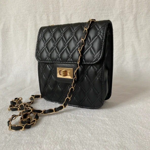 Fatozel Çanta Kapitone Baklava Desen Siyah Çanta FÇ-00023