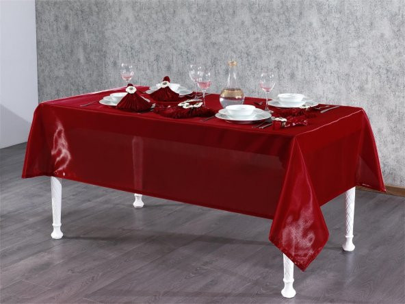 Finezza Mina Kadife Kırmızıya Bordo Sofra Tk. 8 Kşl. 160x230 cm 26 Prç. - 1234