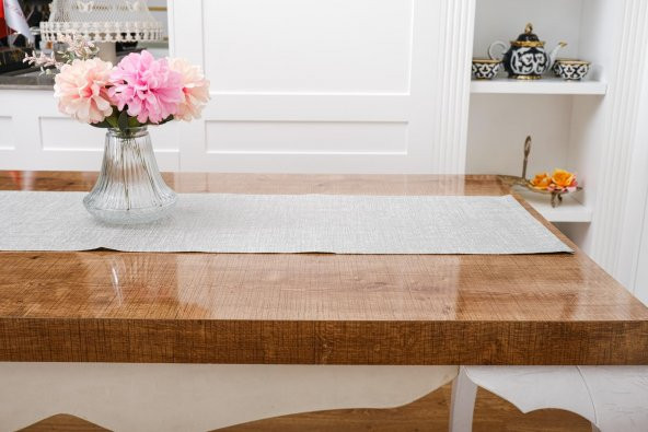 Finezza Linen Baskılı Pamuk/Keten Gümüş Runner 40*140 cm - 682
