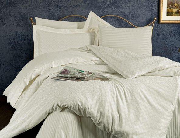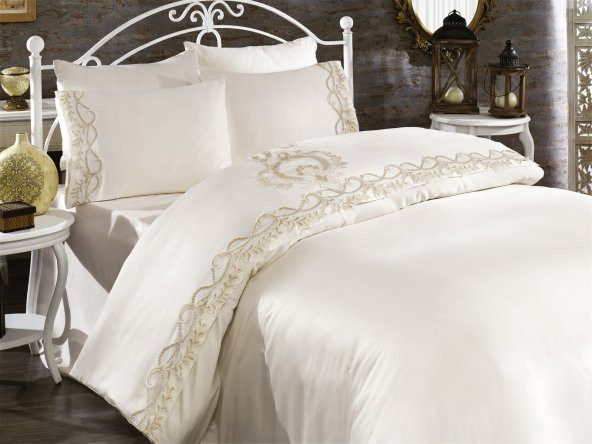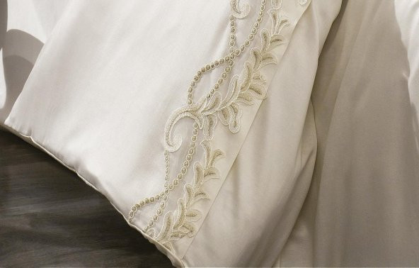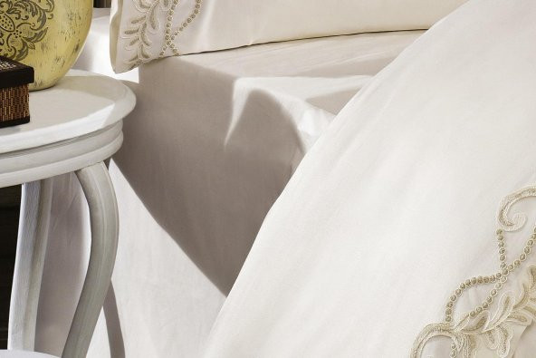 Finezza Kraliçe Pamuk Saten Kumaş Krem Çift Kişilik Nevresim Takımı 6 Prç. - 143