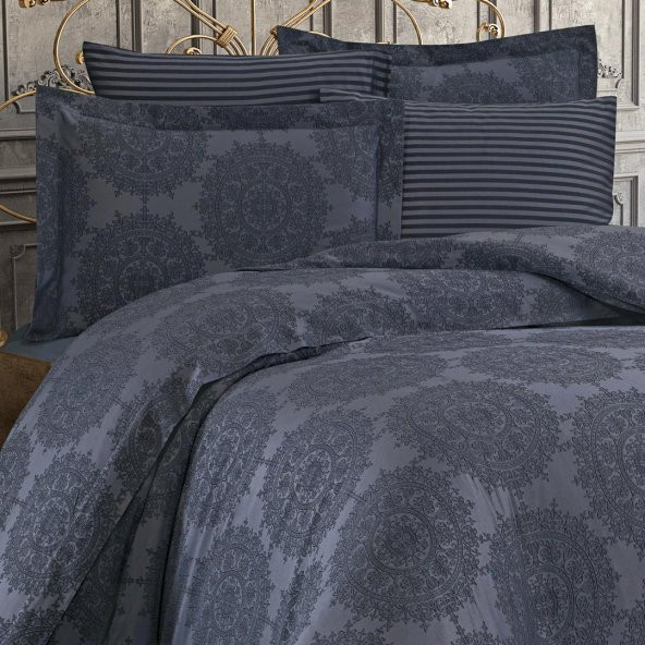 Finezza Tiara Bambu Jakar Kumaş Koyu Gri Çift Kşl. Nevresim Takımı 6 Prç. - 897