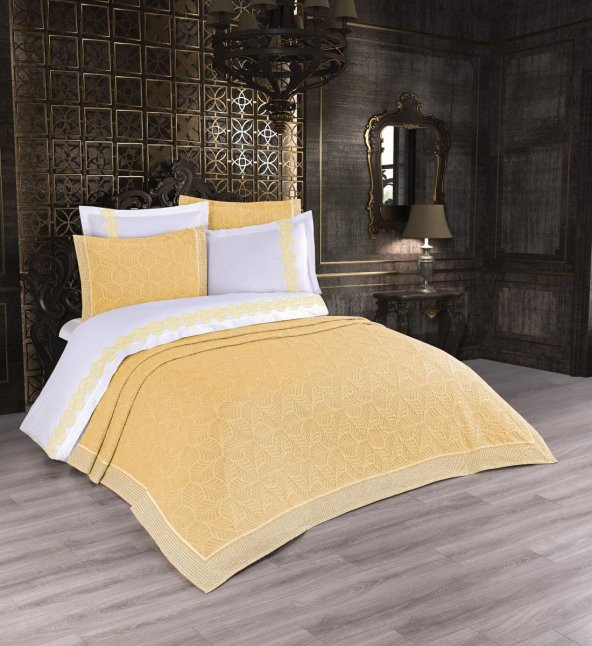 Finezza Freya Jakar Nakışlı Pamuk Nevresimli Sarı Gelin Seti 9 Parça - 1209