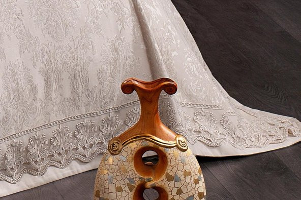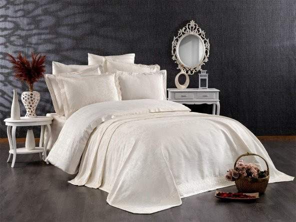 Finezza Delux Jakar Dantelli Bambu Nevresimli Krem Gelin Seti 9 Parça - 1211