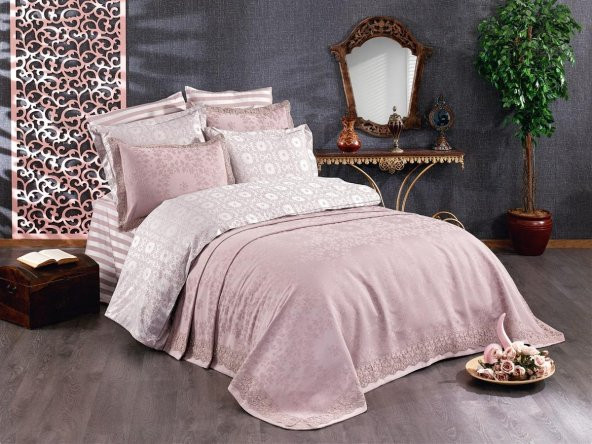 Finezza Jardin Bambu Jakar Kumaş Pudra Çift Kişilik Nevresim Takımı 6 Prç - 1173