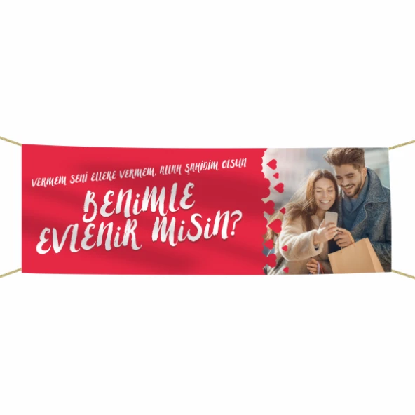 Kişiye Özel Resimli Benimle Evlenir misin? Kumaş Pankart