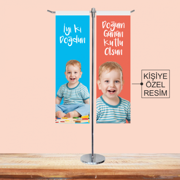 Özel Logolu Masa Bayrağı İkili 15x22,5 cm (Direksiz)