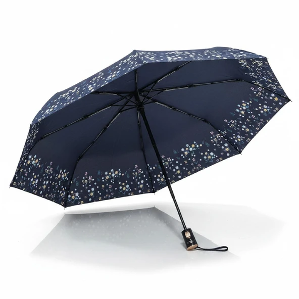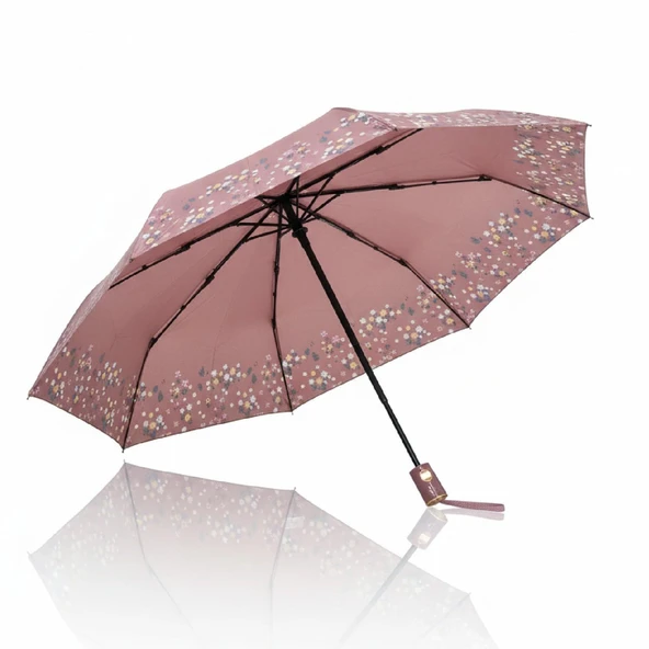 CCL Full Otomatik Kısa 8 Telli Pongee Kumaş Şemsiye Desenli (119G-2) Çiçekli GKH