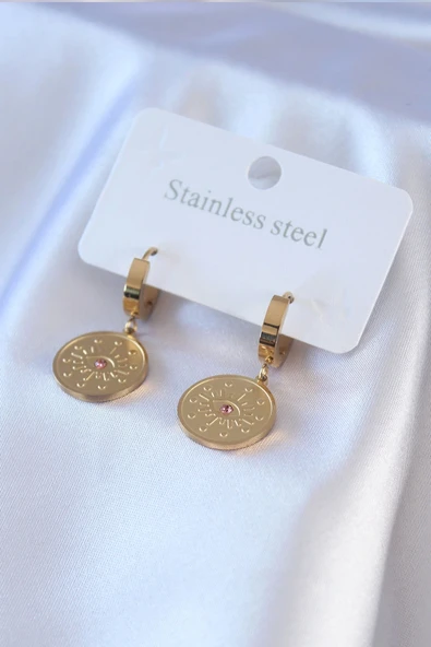 316L Çelik Gold Renk Güneş Model Göz İşleme Kadın Küpe