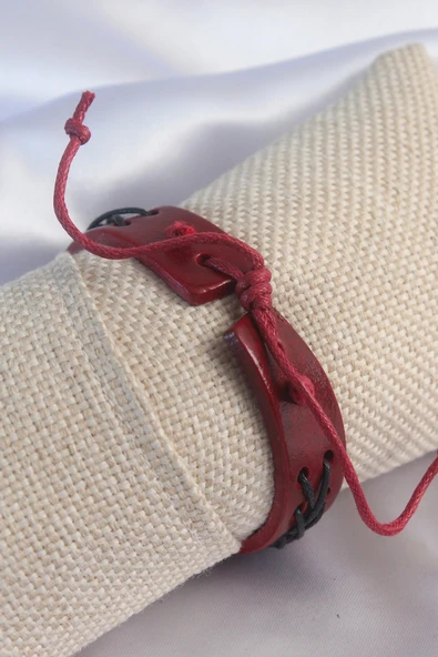 Bordo Renk Siyah İpli Deri Erkek Bileklik