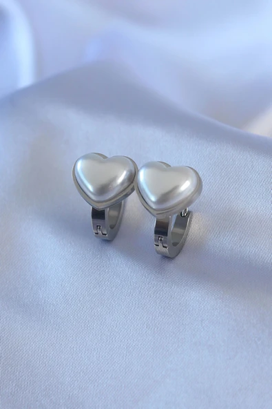 316L Çelik Gümüş Renk İncili Kalp Model Kadın Küpe