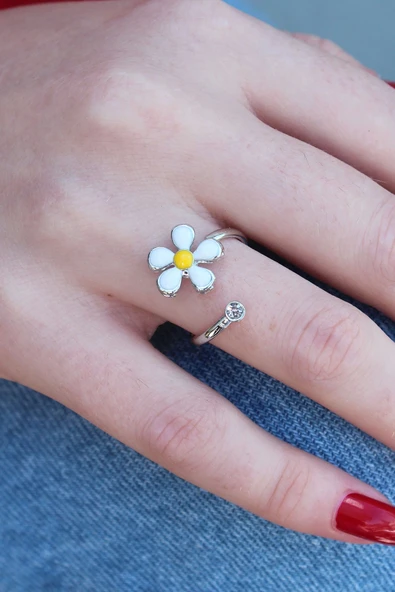 Gümüş Renk Papatya Model Zirkon Taş Detay Kadın Yüzük