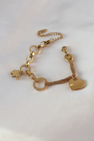 316L Çelik Gold Renk Kalp Model Kadın Halhal