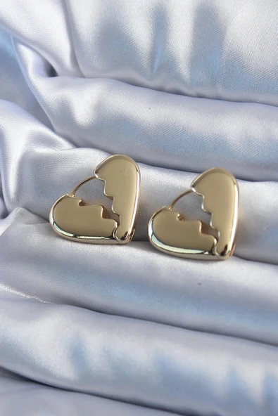 Gold Renk Kırık Kalp Model Pirinç Kadın Küpe