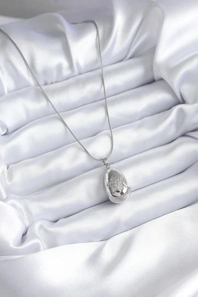 316L Çelik Gümüş Renk Damla Model Yıldız İşleme Zirkon Taş Detay Kadın Kolye