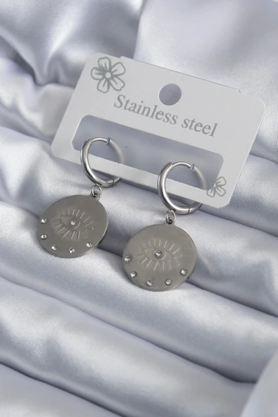 316L Çelik Gümüş Renk Göz İşleme Zirkon Taş Detay Kadın Küpe