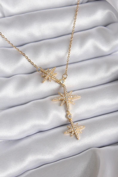 316L Çelik Zincir Gold Renk Zirkon Taşlı Kutup Yıldızı Model Kadın Kolye
