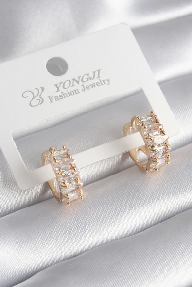 Pirinç Gold Renk Zirkon Taşlı Halka Model Kadın Küpe