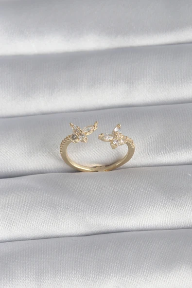 Pirinç Gold Renk Zirkon Taşlı Kelebek Model Kadın Yüzük