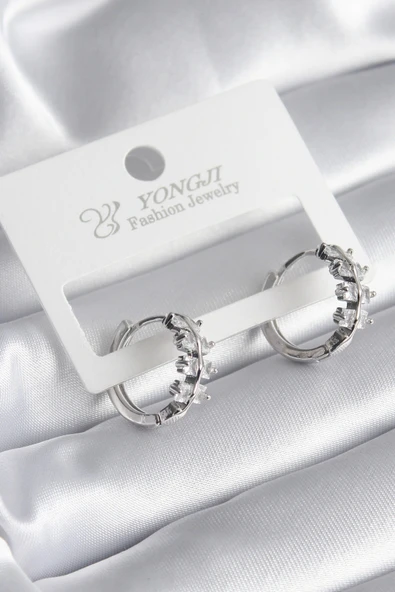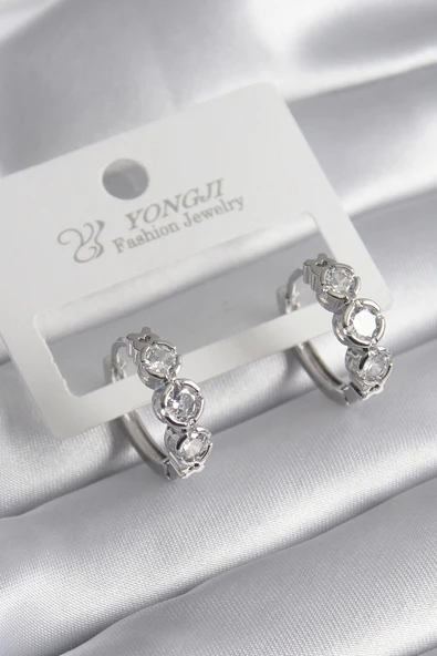 Gümüş Renk Zirkon Taşlı Pirinç Kadın Küpe