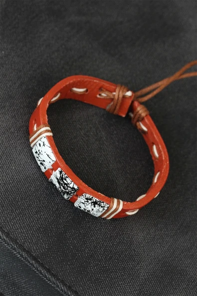 Mermer Taşlı Kahverengi Deri Erkek Bileklik