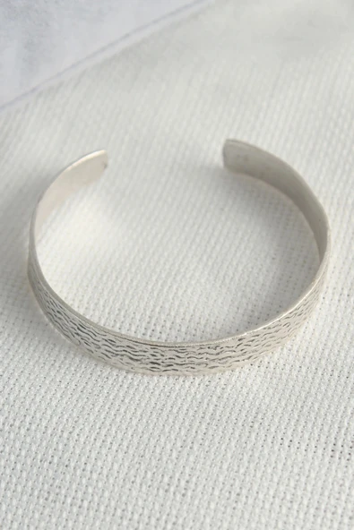 Otantik Gümüş Renk Motif İşleme Detay Plaka Erkek Bileklik
