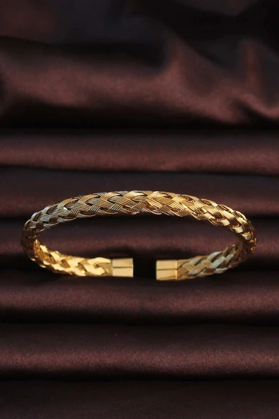 316L Çelik Altın Renk Hasır Görünüm Erkek Bileklik