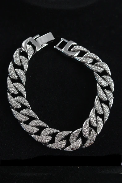 Pirinç Zirkon Taşlı Cuba Gurmet Model Gümüş Renk Erkek Bileklik