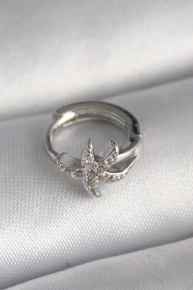 316L Çelik Gümüş Renk Zirkon Taşlı Deniz Yıldızı Model Tragus Piercing