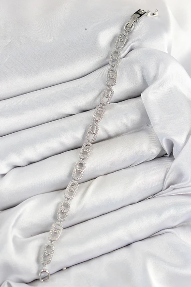 Pirinç Zirkon Taşlı Damla Model Ezme Zincir Gümüş Renk Kadın Bileklik