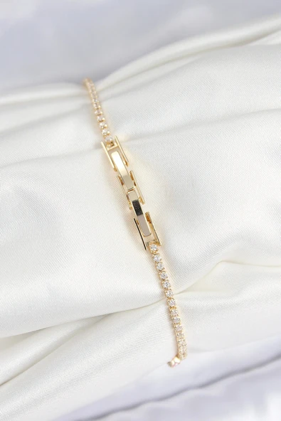 Pirinç Gold Renk Zirkon Taşlı Zincir Model VIP Seri Kadın Bileklik