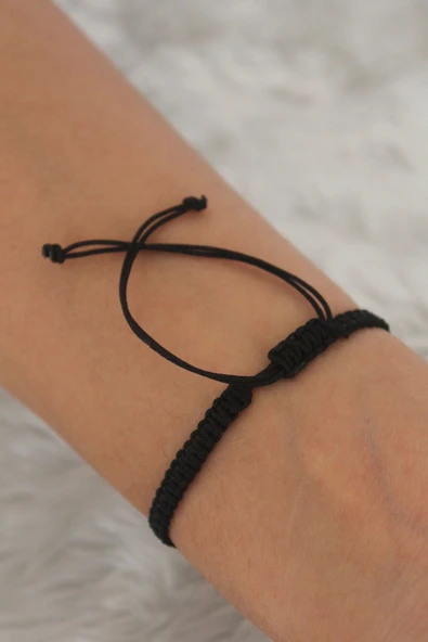 Siyah Renk İpli Asansör Zirkon Taşlı Gümüş Messika Model Kadın Bileklik