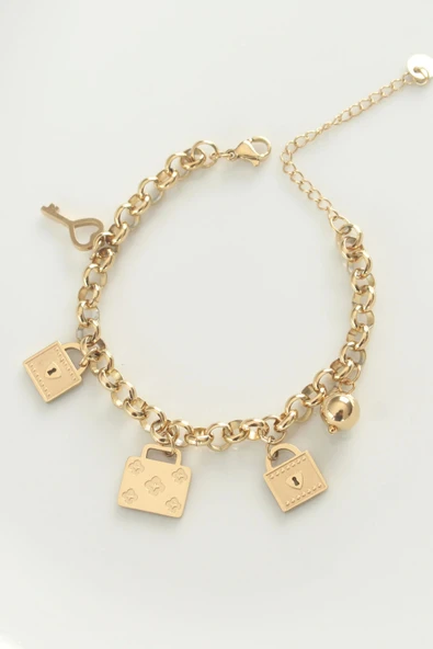 316L Çelik Gold Renk Karışık Aksesuarlı Oval Zincir Bileklik