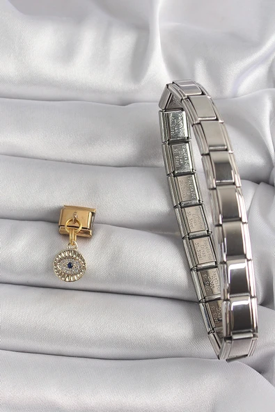 316L Çelik Gümüş Renk Altın Göz İşlemeli Nomination Charm