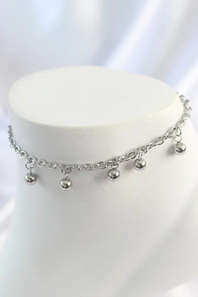316L Çelik Gümüş Renk Sallantı Topçuk Zincir Model Kadın Halhal